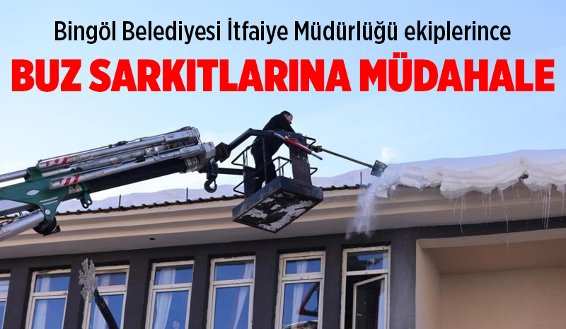 Bingöl'de etkili olan kar yağışı ve don olaylarının ardından şehir merkezinde bina çatılarında oluşan buz sarkıtlarına, Bingöl Belediyesi İtfaiye Müdürlüğü ekiplerince müdahale ediliyor.