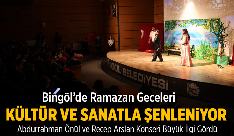Bingöl Belediyesi'nin düzenlediği Ramazan etkinlikleri vatandaşları kültür ve sanatla buluşturuyor. Tiyatro ve çocuk gösterileriyle renklenen programlar, ilahi konserleriyle de Ramazan'ın manevi atmosferini salona taşıyor.
