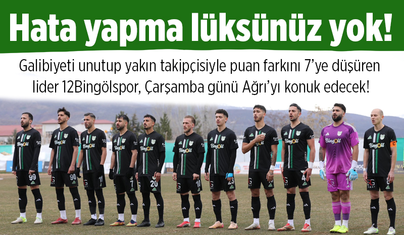 TFF 3. Lig 2. Grup lideri 12 Bingölspor, son haftalarda yaşadığı puan kayıplarıyla dikkat çekiyor. Sahasında Erciyes 38 FK ile 1-1 berabere kalan Bingöl temsilcisinde galibiyet hasreti üç maça çıkarken, lider ile en yakın takipçisi arasındaki puan farkı 7'ye kadar geriledi. Yeşil beyazlı ekibin önündeki kritik karşılaşmalarda hata yapma lüksü yok!