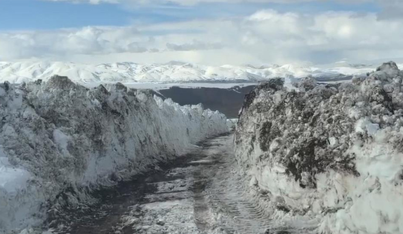 Nisan ayının ortasında olunmasına rağmen Bingöl'ün köy ve mezralarında yolları kapatan metrelerce yükseklikteki karla mücadele sürüyor.