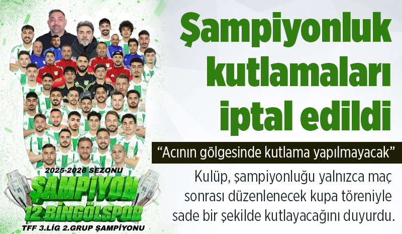 “Ülkemizde yaşanan ve hepimizi derin bir yasa boğan elim olaylar nedeniyle, 12 Bingöl Spor Kulübü olarak planladığımız tüm şampiyonluk kutlamalarını iptal etmiş bulunuyoruz.