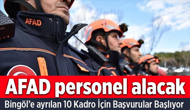 Afet ve Acil Durum Yönetimi Başkanlığı (AFAD), merkez ve taşra teşkilatlarında görevlendirilmek üzere 473 sözleşmeli personel alacağını duyurdu. Yapılacak alımlar kapsamında Bingöl'e 5 koruma ve güvenlik görevlisi, 4 temizlik görevlisi ve 1 teknisyen olmak üzere toplam 10 personel istihdam edilecek.