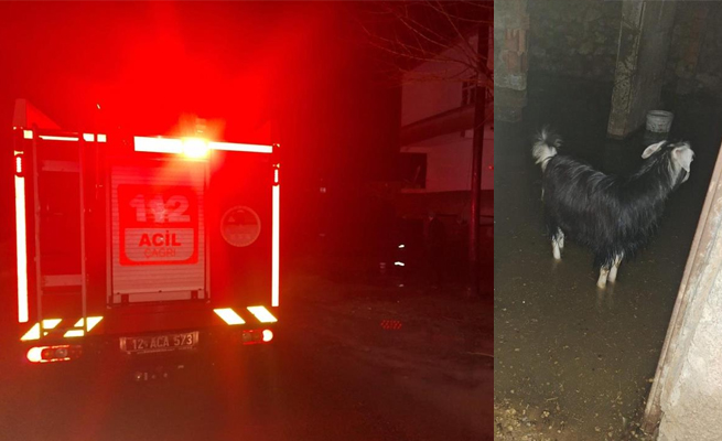 Olay yerine ulaşan ekipler, yaptıkları çalışma sonucu ahırda mahsur kalan 12 keçiyi bulundukları yerden çıkararak güvenli bir alana aldı.