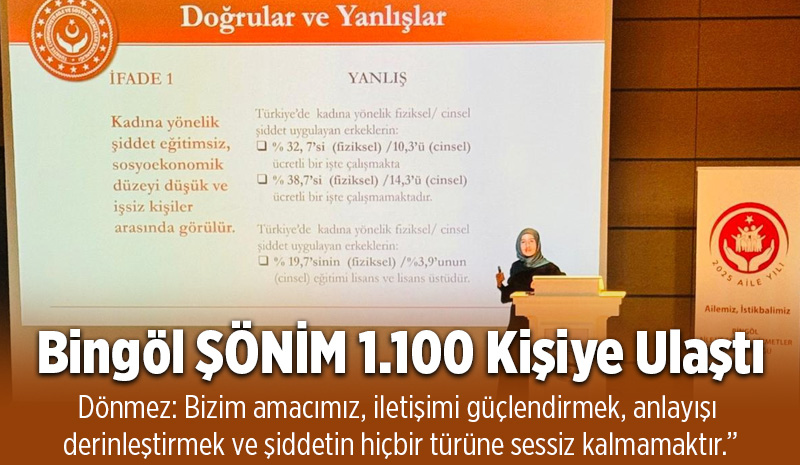Aile Yılında Şiddete Karşı Tek Ses: ŞÖNİM 1100 Kişiye UlaştıBingöl ŞÖNİM, 2025 yılı boyunca toplumun farklı kesimlerinden 1100 kişiye ulaşarak kadına yönelik şiddetle mücadelede farkındalık oluşturdu. Dönmez: 'Bizim amacımız, iletişimi güçlendirmek, anlayışı derinleştirmek ve şiddetin hiçbir türüne sessiz kalmamaktır.'![]() Aile ve Sosyal Hizmetler Bakanlığına bağlı Şiddet Önleme ve İzleme Merkezi (ŞÖNİM), 2025 yılı “Aile Yılı” kapsamında yürüttüğü eğitim, seminer ve farkındalık çalışmalarıyla dikkat çekti. Bingöl Aile ve Sosyal Hizmetler İl Müdürlüğüne bağlı ŞÖNİM, yıl boyunca düzenlediği etkinliklerle kadına yönelik şiddetle mücadele, aile içi iletişim, toplumsal cinsiyet eşitliği ve çocuk güvenliği gibi konularda 1100 kişiye ulaştı. Yapılan çalışmalar kapsamında; İl Tarım ve Orman Müdürlüğü, Jandarma Komutanlığı, İl Emniyet Müdürlüğü, Tapu İl Müdürlüğü, Belediye, Müftülük, Üniversite öğrencileri, Sosyal Yardımlaşma ve Dayanışma Vakfı personeli, Denetimli Serbestlik Müdürlüğü, Öz Sağlık-İş Sendikası personeli, Çevre, Şehircilik ve İklim Değişikliği İl Müdürlüğü, Kadastro Müdürlüğü, lise öğrencileri, SHM aracılığıyla destek alan vatandaşlar, İŞKUR, Kadının Gücü Kooperatifi, Gençlik ve Spor İl Müdürlüğü, Halk Eğitim Merkezi kursiyerleri ve İl Göç İdaresi bünyesindeki yabancı uyruklu bireyler eğitimlerden yararlandı. Eğitimlerde;