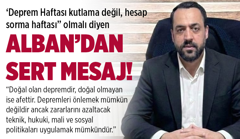 Deprem Haftası için 'kutlama değil, hesap sorma haftası' mesajını veren ve yaşanan büyük afetlere rağmen gerekli adımların atılmadığı ifade eden TMMOB Jeoloji Mühendisleri Odası Bingöl İl Temsilcisi Mehmet Alban; 'Doğal olan depremdir, doğal olmayan ise afettir. Depremleri önlemek mümkün değildir ancak zararlarını azaltacak teknik, hukuki, mali ve sosyal politikaları uygulamak mümkündür.'