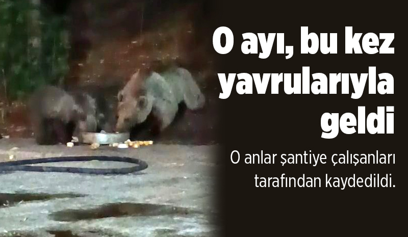 Ayı, bu kez 3 yavrusunu da alıp aynı yere geldi. Uzun süre tepsi içerisindekileri yiyen anne ayı ve yavruları, karınlarını doyurduktan sonra ormanlık alana girerek gözden kayboldu.