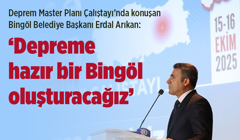Başkan Arıkan: “Depreme hazır bir Bingöl oluşturmak için iş birliğiyle hareket ediyoruz”Bingöl Belediye Başkanı Erdal Arıkan, afetle mücadelenin ilk şartının afet öncesi hazırlık olduğunu vurgulayarak, daha dirençli ve güvenli şehirler inşa etmenin önemine dikkat çekti. Arıkan, konuşmasında şu ifadelere yer verdi: