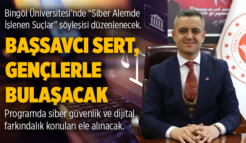 Bingöl Üniversitesi'nde 'Siber Alemde İşlenen Suçlar' söyleşisi düzenlenecek. Bingöl Cumhuriyet Başsavcısı Abdullah Sert'in katılımıyla gerçekleştirilecek programda siber suçlar, dijital riskler ve bireysel güvenlik önlemleri ele alınacak.
