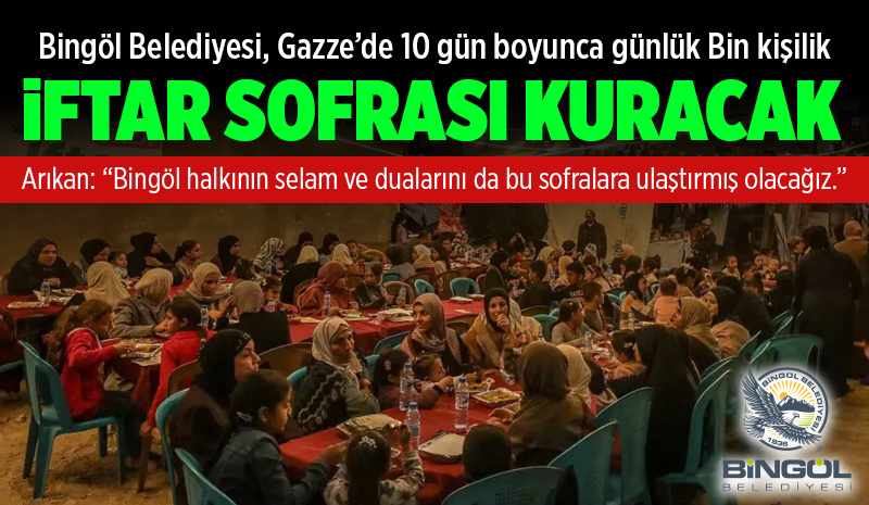 Bingöl Belediyesi tarafından gerçekleştirilecek iftar programıyla Gazze'de ihtiyaç sahibi ailelere sıcak yemek ulaştırılması ve Ramazan ayının dayanışma ruhunun paylaşılması hedefleniyor.