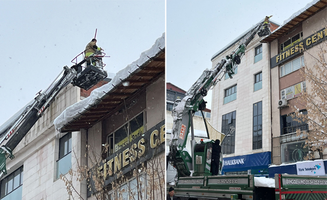 Bingöl Belediyesi'nden Çatılara MüdahaleÇatıdan düşebilecek kar ve buzların olası kazalara yol açmasının önüne geçilmesi amacıyla yürütülen çalışmaların ihtiyaç duyulan alanlarda devam edeceği vurgulanırken, vatandaşların çatı altlarında yürürken dikkatli olmaları, sürücülerin ise araçlarını çatı diplerine park etmemesi istendi.![]() Bingöl'de dün akşam saatlerinden itibaren etkisini sürdüren kar yağışı, günlük yaşamı olumsuz yönde etkilemeye devam ediyor. Kent merkezinde ulaşım güçlükle sağlanırken, birçok köy yolu ulaşıma kapandı. Kar kalınlığının her geçen saat daha da yükseldiği şehirde, çatılarda biriken kar kütleleri özellikle yaya güvenliği açısından risk oluşturunca Bingöl Belediyesi harekete geçti. İtfaiye Ekipleri Merkezde Çatı Temizliği YapıyorBingöl Belediyesi İtfaiye Müdürlüğü ekipleri, çarşı merkezindeki iş merkezleri ile kullanılmayan bazı binaların çatılarına çıkarak biriken kar kütlelerini kontrollü şekilde temizlemeye başladı. Yaya yoğunluğunun fazla olduğu caddelerde yürütülen çalışmalarla, çatıdan düşebilecek kar ve buzların olası kazalara yol açmasının önüne geçilmesi hedefleniyor. Yetkililer, çatılarda biriken karın zaman zaman büyük kütleler halinde düşebildiğini ve bunun özellikle işlek bölgelerde ciddi yaralanmalara sebep olabileceğini hatırlatarak çalışmaların önemine vurgu yaptı. “Yaya Yoğunluğu Olan Bölgelerde Çalışmalar Sürecek”Yetkililer, temizlik faaliyetlerinin belirli bölgelerle sınırlı olduğuna da dikkat çekerek şunları aktardılar;