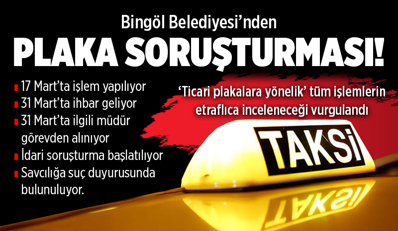 Bingöl Belediyesi'nden plaka soruşturması!Kamuoyuna yansıyan 'Taksi Plakası' konusunda 31 Mart'ta başlatılan süreçle ilgili tüm detayları paylaşan Bingöl Belediyesi, usule aykırı işlem şüphesiyle başlatılan idari ve adli sürecin devam ettiğini, ilgili personelin de görevden alındığını bildirdi.![]() Usule aykırı şekilde taksi plakası verildiği iddialarına ilişkin açıklamada bulunan Bingöl Belediyesi Basın Yayın ve Halkla İlişkiler Müdürlüğü, 31 Mart'ta başlayan soruşturma ve görevden alma süreçleriyle ilgili detaylı bilgiler paylaştı. İHBAR 31 MART'TA GELDİ, SÜREÇ ANINDA BAŞLATILDIEncümen kararı ve ihale süreci tamamlanarak 22 Aralık 2022'de usule uygun gerçekleştirilen taksi plakası kiralama ihalesinde katılım sağlayıp ihaleyi kazanan ancak ihale sonrası teminatını yakarak kiralama işinden vazgeçen bir plakayla ilgili 17 Mart 2026'da evrak düzenlemek suretiyle işlem yapıldığı tespitinin vurgulandığı açıklamada, detaylar şöyle aktarıldı; “31 Mart 2026 tarihinde Belediyemize ulaşan ihbar üzerine Belediye Başkanımız Sayın Erdal Arıkan'ın talimatıyla Teftiş Kurulu Müdürlüğü'müzce süratle inceleme başlatılmıştır.” “İLGİLİ PERSONEL GÖREVDEN ALINMIŞTIR”“Soruşturmanın selameti açısından sorumlu personel 31 Mart 2026 tarihinde görevden alınmış olup, Bingöl Şoförler ve Otomobilciler Odası ile İl Trafik Şube Müdürlüğüne de süreç hakkında bilgi akışı sağlanmıştır.” YASAL OLMAYAN İŞLEM YAPTIĞI TESPİT EDİLDİ“Yapılan incelemeler neticesinde 2022 tarihli ihalenin hemen ardından teminatını yakarak hakkından vazgeçen bir şoför esnafı nedeniyle boşa çıkan bir plakaya ilişkin olarak, 17 Mart 2026 tarihinde ilgili personelin “görevi kötüye kullanmak ve usule aykırı evrak düzenlemek” suretiyle “Ticari Taşıt Tahsis Belgesi” oluşturduğu tespit edilmiştir. Söz konusu işlem, Belediyemizin resmi kayıt ve sistemleri dışında, mevzuata aykırı ve tamamen kişisel bir tasarruf niteliğindedir. Nitekim yapılan incelemelerde, bu plakaya ilişkin herhangi bir resmi kaydın bulunmadığı açıkça ortaya konulmuştur.” SAVCILIĞA SUÇ DUYURUSU, ÇOK YÖNLÜ SORUŞTURMAAçıklamada, yasal olmayan işlemlerle ilgili olarak 31 Mart 2026'da inceleme ve idari soruşturma başlatıldığı, ayrıca ilgili personel hakkında Bingöl Cumhuriyet Başsavcılığı'na suç duyurusunda bulunulduğu, sürecin çok yönlü şekilde sürdürüldüğü bildirildi. “SIFIR TOLERANS” VURGUSUAçıklamanın sonunda, Bingöl Belediyesi'nin kamu kaynaklarının korunması, şeffaflık ve hesap verebilirlik ilkeleri doğrultusunda hareket ettiği belirtilerek, mevzuata aykırı hiçbir girişime müsamaha gösterilmeyeceği ifade edildi. İhbarın geldiği 31 Mart 2026 günü başlatılan çok yönlü soruşturmanın tavizsiz ve kararlılıkla sürdürüldüğünün altı çizilirken, ‘ticari plakalara yönelik' tüm işlemlerin etraflıca inceleneceği, soruşturma sonucuna göre gerekli tüm yaptırımların uygulanacağı vurgulandı.
