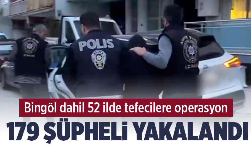 Bingöl'ün de aralarında olduğu 52 ilde, tefecilere yönelik eş zamanlı düzenlenen operasyonlarda 179 şüpheli yakalandı.