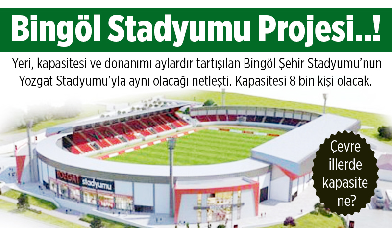 Ancak Gençlik ve Spor Bakanlığı'nın, Yozgat Bozok Stadyumu'nun aynısının yapılması yönünde talimat verdiği öğrenildi. Netleşen bu durumla birlikte kapasitesi 8 Bin kişilik olacak yeni Bingöl Şehir Stadyumu Yozgat Stadyumu ile bire bir aynı olacak. Yeni stadyum, mevcut stadyumun yerine yapılacak.
