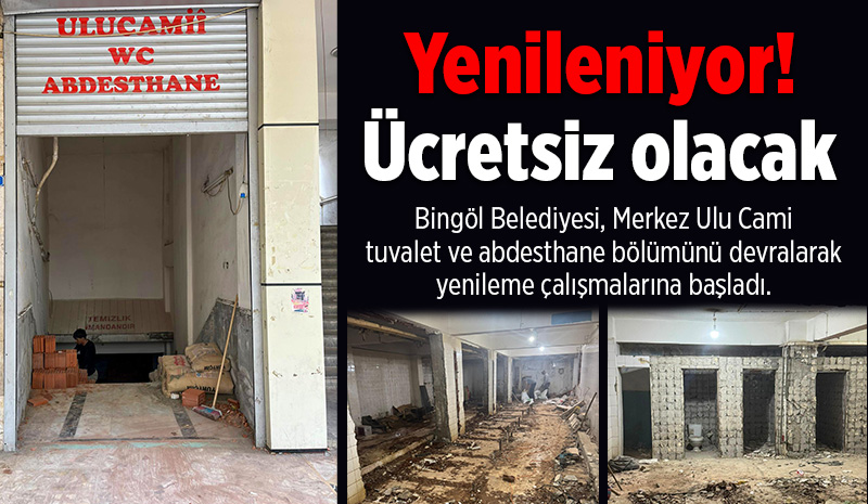 Bingöl Belediyesi ile İl Müftülüğü arasında imzalanan protokol kapsamında, Ulu Cami tuvaletlerinin bakım, onarım ve işletme sorumluluğu Bingöl Belediyesi'ne devredildi.