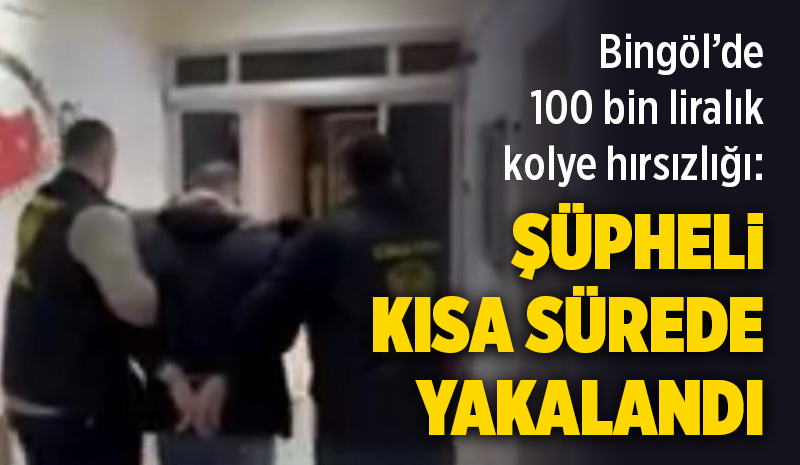 Bingöl'de bir evden 100 bin lira değerinde kolye çalınması üzerine başlatılan çalışmada şüpheli kısa sürede yakalandı. Gözaltına alınan zanlı, çıkarıldığı mahkemece tutuklandı.