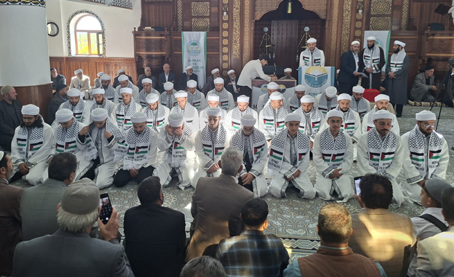 Konuşmaların ardından eğitimlerini tamamlayan 34 talebeye, plaket ve icazet takdimi yapıldı.