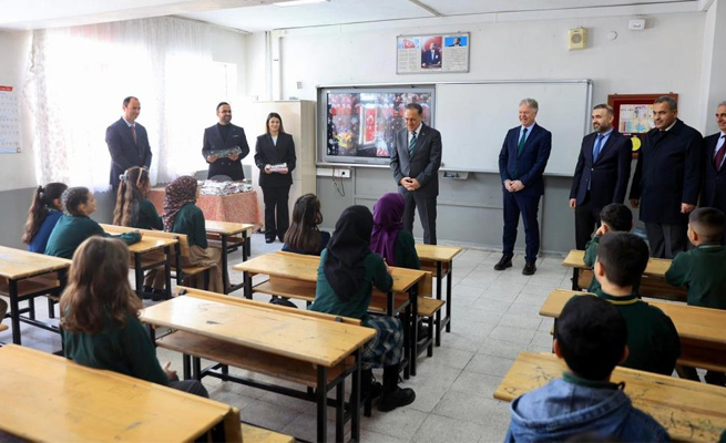 Program kapsamında Vali Usta, okulun uluslararası yarışmalarda dereceye giren iki öğrencisine de madalya ve hediyelerini takdim etti. Ardından öğrencilerle sohbet eden Usta, öğretmenlerle de bir araya geldi.