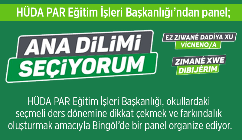 HÜDA PAR Eğitim İşleri Başkanlığı, okullardaki seçmeli ders dönemine dikkat çekmek ve farkındalık oluşturmak amacıyla Bingöl'de bir panel organize ediyor.