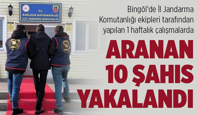 Bingöl'de aranan 10 şahıs yakalandıBingöl'de İl Jandarma Komutanlığı ekipleri tarafından yapılan 1 haftalık çalışmalarda, çeşitli suçlardan hapis cezası bulunan 10 şahıs yakalandı.![]() Bingöl İl Jandarma Komutanlığı ekiplerince 20-27 Şubat 2026 tarihleri arasında aranan şahısların yakalanmasına yönelik çalışma yapıldı. Yapılan çalışmalar sonucunda, çeşitli suçlardan aranan 10 şüpheli yakalandı. Yakalanan 10 şahıs, yapılan işlemlerin ardından çıkarıldıkları mahkemece tutuklanarak cezaevine gönderildi.