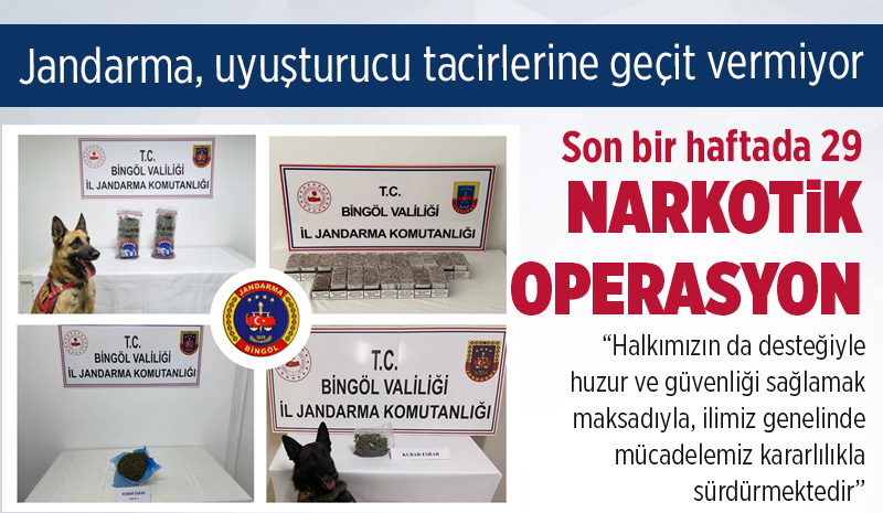 Bingöl İl Jandarma Komutanlığı, komutanlık birimlerince 10-17 Ekim 2025 tarihleri arasında Kaçakçılık ve Narkotik Suçlarla Mücadele kapsamında 29 olaya müdahale edildiğini bildirdi.