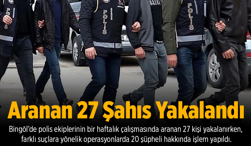 Bingöl İl Emniyet Müdürlüğü ekiplerince 03 Nisan-10 Nisan 2026 tarihleri arasında aranan şahısların yakalanmasına yönelik yürütülen çalışmalar kapsamında önemli sonuçlar elde edildi.