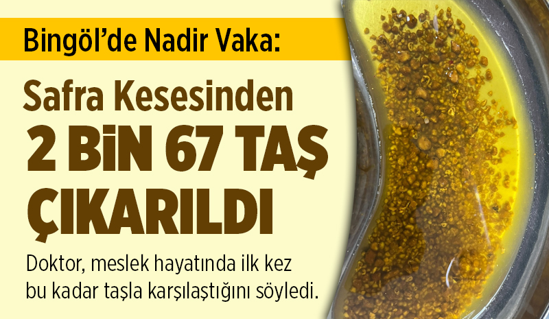 Bingöl Devlet Hastanesi'nde gerçekleştirilen başarılı bir operasyon nadir görülen bir vakayı ortaya çıkardı. Mustafa Yiğit tarafından yapılan laparoskopik kolesistektomi (kapalı safra kesesi ameliyatı) sırasında hastanın safra kesesinden toplam 2 bin 67 taş çıkarıldı.