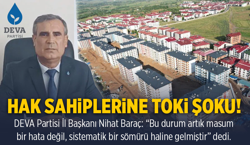 “ŞEFFAFLIK YERİNE YANDAŞ DÜZENİ KURULDU”Deva Partisi Bingöl İl Başkanı, TOKİ'nin asli amacından saptırıldığını ve siyasi çıkar aracı haline getirildiğini belirterek şu değerlendirmede bulundu: