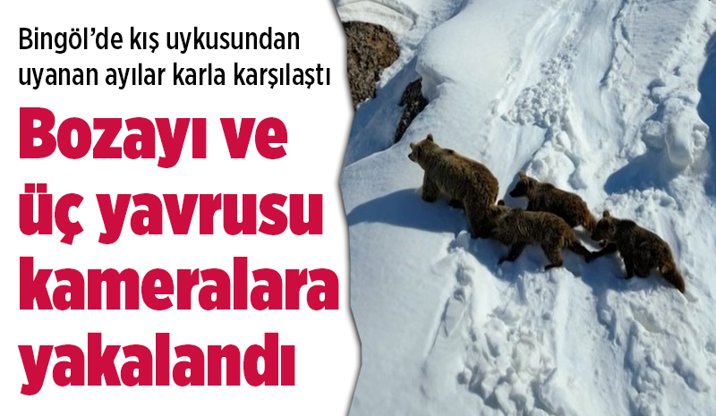 Bingöl'de doğada nadir rastlanan görüntüler kaydedildi. Kış uykusundan uyanan bir bozayı ve üç yavrusu, karla kaplı arazide dolaşırken görüntülendi.