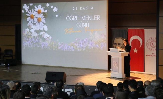 Bingöl'de Öğretmenler Günü coşkusuBingöl'de 24 Kasım Öğretmenler Günü, coşkuyla kutlandı. Şiirler okundu, türküler seslendirildi, emektarlar ödüllendirildi. Programın özel sürprizi ise Valilik tarafından öğretmenlere yönelik hazırlanan videonun paylaşılması oldu.![]() Bingöl'de 24 Kasım Öğretmenler Günü, düzenlenen kapsamlı salon programında coşkuyla kutlandı. Program, saygı duruşu ve İstiklal Marşı'nın okunması ile başladı. Açılış konuşmalarında öğretmenlik mesleğinin değeri vurgulandı. Programın kültürel bölümünde Yunus Emre Anadolu Lisesi öğrencilerinin hazırladığı "Şehit Öğretmenlerimize İthafen" oratoryosu büyük beğeni topladı. Nursima Üzer'in seslendirdiği "Ben Öğretmen Olmak İstiyorum" şiiri salonda duygu dolu anlar yaşattı. Öğretmen ailelerinin gönderdiği kutlama mesajları videosu ve öğrencilerin öğretmenlerine yönelik samimi ifadelerinin yer aldığı video izleyicilere sunuldu. Mesleğe yeni başlayan öğretmenlerin Ant İçme Töreni, Şener Macit rehberliğinde gerçekleştirildi. Öğretmenler, mesleğin onurunu koruyacaklarına dair yemin ederek göreve resmen adım attı. Programın özel sürprizi ise Valilik tarafından öğretmenlere yönelik hazırlanan videonun paylaşılması oldu. Ardından öğretmenler arası masa tenisi, satranç, fotoğraf; veliler arası anı ve öğrenciler arası kompozisyon yarışmalarında dereceye girenlere ödülleri takdim edildi. 2025 yılında emekliye ayrılan öğretmenler Abdulsamet Tan ve Orhan Durman, Hizmet Şeref Belgelerini Vali Vekili İbrahim Gökmen'in elinden aldı. Etkinlik, öğretmenlerden oluşan müzik grubunun hazırladığı Öğretmenler Günü özel konseri ile sona erdi.