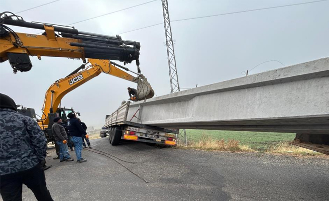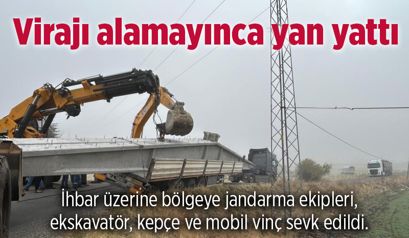 Bingöl'de çiftlik için çatı bloğu taşıyan tır, virajı alamayınca yan yattı. Yaralananın olmadığı kazada, maddi hasar meydana geldi.
