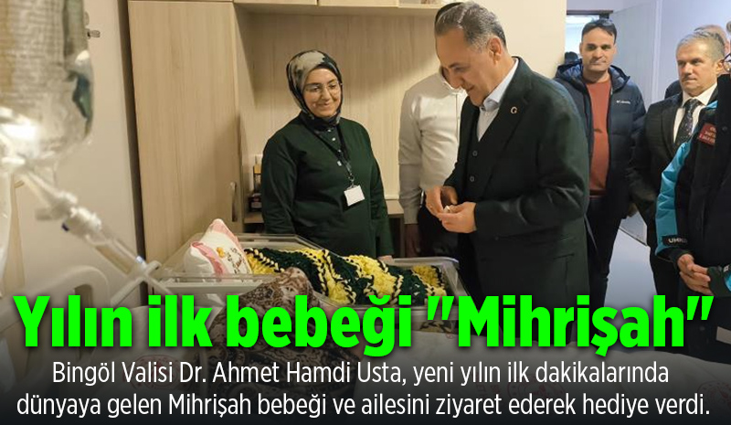Vali Usta, "2026 yılının ülkemize, milletimize, Bingöl'ümüze ve tüm insanlığa sağlık huzur başarı getirmesini temenni ediyorum. Bugün de hastanemize geldik biraz önce de hastanemize de 2026 yılı ilk bebeğinin ziyaret ettik. Sevgili annesi Mihriban‘la babası Burhan ikinci çocukları olan Mihrişah'ın yeni yılını kutladık. Ben 2026 doğan bütün bebeklerimize uzun ve sağlıklı ömürler barış huzur içinde bir ömür diliyorum. Özellikle sağlık personellerimize, ebelerimize, doktorlarımıza, hemşirelerimize ve idari personelimize de bu akşam da görevlerinden dolayı şükranlarımı sunuyorum. Görevini ifa eden polisimize, jandarmamızı da üstün başarılı görevler diliyorum. Genel anlamda 2026 yılının ülkemize Bingöl'ümüze huzur ve mutluluk getirmesi temenni ediyorum" dedi.