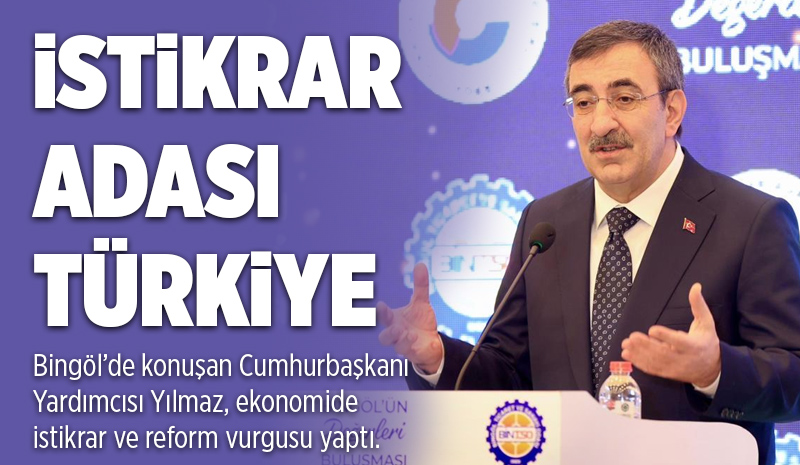 Cumhurbaşkanı Yardımcısı Yılmaz: 'Türkiye, belirsizlikler ortasında istikrar adası'Cumhurbaşkanı Yardımcısı Cevdet Yılmaz, Bingöl'de yaptığı konuşmada Türkiye'nin küresel belirsizliklere rağmen büyümesini sürdürdüğünü belirterek, 'Savaşların ve çatışmaların ortasında istikrarla yoluna devam eden bir Türkiye var' dedi. Yılmaz, Türkiye ekonomisinin bu yıl 1,5 trilyon doları aşacağını, enflasyonda ise 2027'de tek haneli rakamların hedeflendiğini söyledi.![]() Cumhurbaşkanı Yardımcısı Cevdet Yılmaz, dünya genelinde savaşlar, çatışmalar ve ekonomik belirsizliklerin arttığı bir dönemde Türkiye'nin istikrarını koruyarak büyümesini sürdürdüğünü söyledi. Yılmaz, “Savaşların, çatışmaların, belirsizliklerin ortasında büyümeye devam eden bir Türkiye var” dedi. Cumhurbaşkanı Yardımcısı Yılmaz, Bingöl'ün Değerleri Buluşması ve Ödül Töreni'ne katılarak, Bingöl Ticaret ve Sanayi Odası'nda düzenlenen programda ekonomi ve küresel gelişmelere ilişkin değerlendirmelerde bulundu. “Dünya Yeni ve Belirsiz Bir Dönemden Geçiyor”Dünyanın zorlu bir süreçten geçtiğini ifade eden Yılmaz, mevcut küresel düzenin zayıfladığını belirterek,