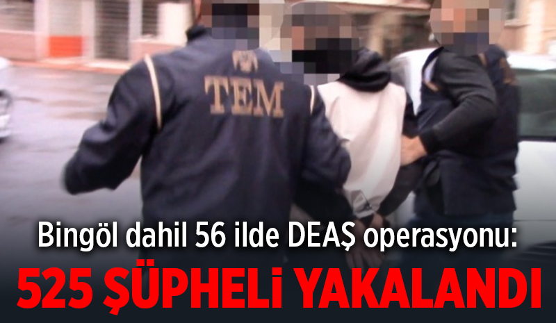 Emniyet Genel Müdürlüğü TEM Daire Başkanlığı, İstihbarat Başkanlığı, MİT Başkanlığı ve Cumhuriyet Başsavcılıkları koordinesinde Bingöl dahil 56 ilde DEAŞ terör örgütüne yönelik düzenlenen operasyonlarda 525 şüpheli yakalandı.