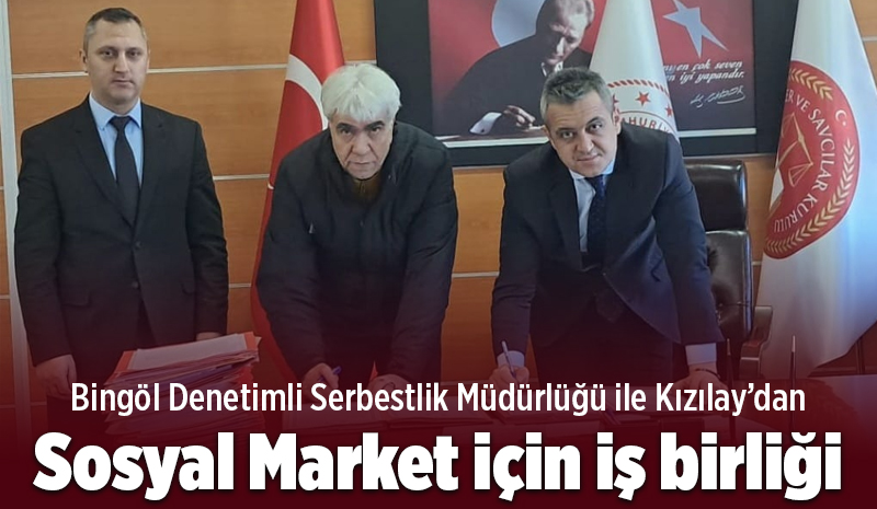 Bingöl Denetimli Serbestlik Müdürlüğü ile Kızılay Bingöl Şubesi arasında, ihtiyaç sahibi yükümlülerin desteklenmesi amacıyla Sosyal Market'in güçlendirilmesine yönelik iş birliği protokolü imzalandı.