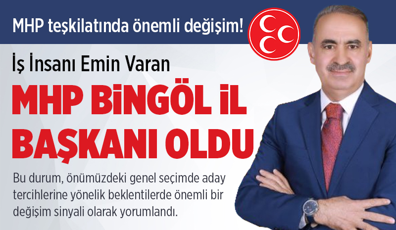 Milliyetçi Hareket Partisi (MHP) Bingöl İl Teşkilatı'nda önemli bir görev değişikliği yaşandı. Parti genel merkezi tarafından alınan karar doğrultusunda Bingöl il teşkilatı feshedilirken, İl Başkanlığı görevine Emin Varan atandı.