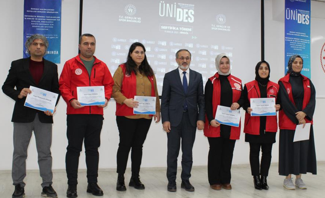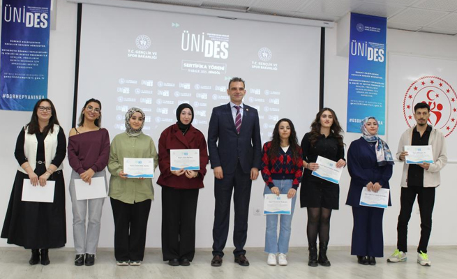 Gençlerin fikirlerine 1 Milyon 850 Bin TL'lik proje desteğiUNİDES kapsamında Bingöl'de üniversite öğrencilerinin hazırladığı 26 proje desteklenirken, projeler için toplam 1 milyon 850 bin TL hibe sağlandı. Projelerde görev alan üniversite öğrencileri için sertifika töreni düzenlendi.![]() Gençlik ve Spor Bakanlığı Gençlik Hizmetleri Genel Müdürlüğü tarafından yürütülen Üniversite Öğrenci Toplulukları İş Birliği ve Destek Programı (UNİDES) kapsamında Bingöl'de hayata geçirilen projelerde görev alan üniversite öğrencileri için sertifika töreni düzenlendi. Bingöl Gençlik ve Spor İl Müdürlüğü koordinasyonunda gerçekleştirilen törende, üniversite öğrenci topluluklarının aktif katkıları, akademisyenlerin rehberliği ve proje koordinatörlerinin özverisiyle yürütülen çalışmalarda yer alan öğrencilere sertifikaları takdim edildi. Sertifikalar; Bingöl Valisi Dr. Ahmet Hamdi Usta, Bingöl Belediye Başkanı Erdal Arıkan, İl Jandarma Komutanı Tuğgeneral Sabri Küyük ve kurum amirleri tarafından verildi. UNİDES programı kapsamında 2025 yılı boyunca Bingöl'de faaliyet gösteren 16 üniversite öğrenci topluluğunun hazırladığı 15 yerel ve 11 ulusal proje destek almaya hak k azandı. Projeler için toplamda 1 milyon 850 bin TL hibe desteği sağlandığı bildirildi. Yetkililer, UNİDES programının gençlerin fikirlerini projeye dönüştürmelerine imkân sunduğunu, üniversite-şehir iş birliğini güçlendirdiğini ve gençlerin sosyal sorumluluk, üretkenlik ile toplumsal bilinç alanlarında gelişimlerine önemli katkılar sağladığını ifade etti. Öte yandan 2026 yılı UNİDES başvuruları için çağrıda bulunularak, yerel projelere 75 bin TL, ulusal projelere ise 125 bin TL destek verileceği, başvuruların 11 Şubat 2026 tarihinde sona ereceği duyuruldu.