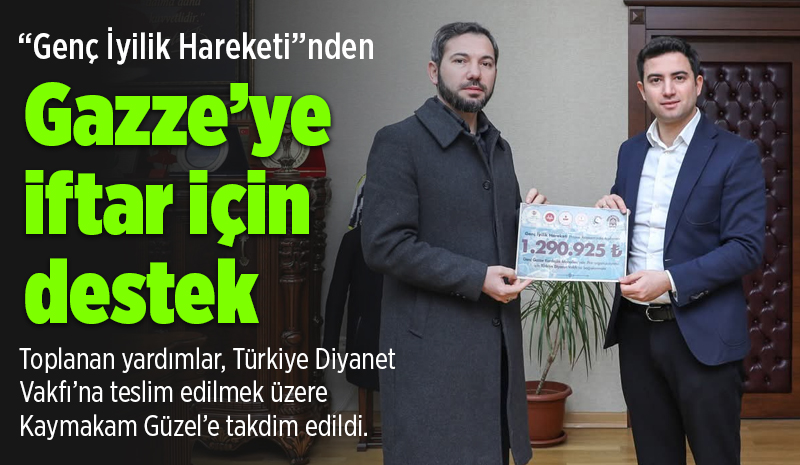 Genç'te Gazze için iftar bağışıBingöl'ün Genç ilçesinde 'Genç İyilik Hareketi' kapsamında Gazze'de düzenlenecek iftar organizasyonu için başlatılan yardım kampanyasında 1 milyon 290 bin TL bağış toplandı. Toplanan yardımlar Türkiye Diyanet Vakfı'na teslim edilmek üzere Kaymakam Güzel'e takdim edildi.![]() Bingöl'ün Genç ilçesinde yürütülen “Genç İyilik Hareketi” kapsamında Gazze'deki ihtiyaç sahipleri için düzenlenen yardım kampanyasında 1 milyon 290 bin TL bağış toplandı. Genç İslami Kardeşlik ve Dayanışma Platformu heyeti, Gazze'de yürütülen yardım çalışmaları hakkında bilgi vermek üzere Genç Kaymakamı Muhammet Güzel'i makamında ziyaret etti. Ziyarette, ilçede yardımlaşma ve gönüllülük bilincini güçlendirmek amacıyla başlatılan çalışmaların ilk sonuçlarının ihtiyaç sahiplerine ulaştığı ifade edildi. Gazze'de “Kardeşlik Mahallesi”ne DestekProje kapsamında Gazze'de oluşturulan “Genç Gazze Kardeşlik Mahallesi”nde düzenlenecek iftar organizasyonu için Genç ilçesinde bir yardım kampanyası gerçekleştirildi. Kampanya çerçevesinde toplanan 1 milyon 290 bin TL'lik bağışın ihtiyaç sahiplerine ulaştırılmak üzere Türkiye Diyanet Vakfı'na teslim edildiği bildirildi. Ramazan Ayına Yönelik YardımlarZiyarette ayrıca Ramazan ayı dolayısıyla kardeş mahallede düzenlenecek iftar programları, gıda ve temel ihtiyaç yardımları ile çocuklara yönelik faaliyetler hakkında değerlendirmelerde bulunuldu. Sürdürülebilir yardım çalışmalarının devam edeceği ifade edildi. Kaymakam Güzel'den TeşekkürZiyaretten duyduğu memnuniyeti dile getiren Genç Kaymakamı Muhammet Güzel, ilçede sergilenen dayanışma örneğinin önemli olduğunu belirterek kampanyaya destek veren hayırsever vatandaşlara teşekkür etti. Ziyarete İlçe Müftüsü Ferhat Mat, İlçe Millî Eğitim Müdürü Muhammet Erdemoğlu ve platform temsilcisi Muhammet Mustafa Demirağ da katıldı.