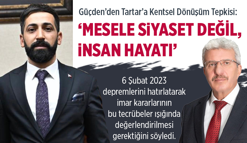 Başkan Tartar'ın kentsel dönüşüm sürecini “mağduriyetleri giderme” çerçevesinde değerlendirmesini eleştiren Güçden, bu yaklaşımın sahadaki durumla örtüşmediğini ileri sürdü.