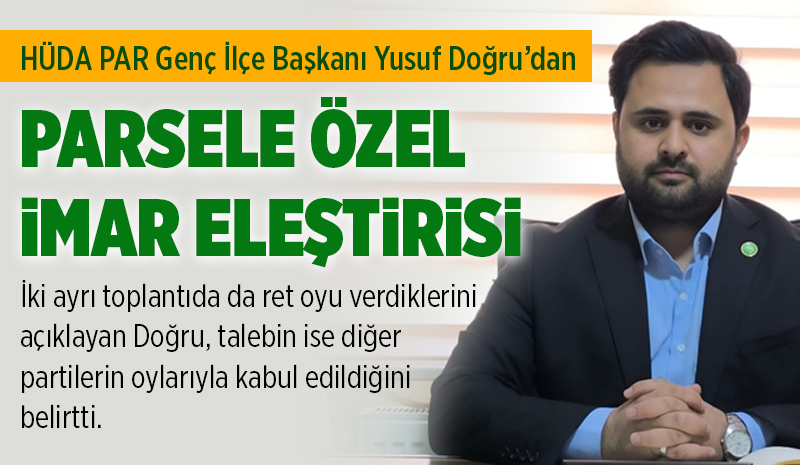 HÜDA PAR'dan İmar Talebine Ret: 'Emsal Oluşturur'HÜDA PAR Genç İlçe Başkanı Yusuf Doğru, Genç Belediye Meclisi'nde gündeme gelen parsele özel imar talebine iki ayrı toplantıda da ret oyu verdiklerini açıkladı. Talebin ise diğer partilerin oylarıyla kabul edildiği belirtildi.![]() HÜDA PAR Genç İlçe Başkanı Yusuf Doğru, mart ayında gerçekleştirilen belediye meclis toplantısında gündeme gelen imar talebine ilişkin açıklamalarda bulundu. Doğru, söz konusu talebin parsele özel olduğunu belirterek, HÜDA PAR olarak ilk görüşmede ret oyu verdiklerini ve talebin bu haliyle meclisten geçmediğini ifade etti. “İlçede En Yüksek İmar 5 Kat”Ret gerekçelerini açıklayan Doğru, ilçede bugüne kadar uygulanan en yüksek imar izninin 5 kat olduğunu hatırlattı. Talepte yer alan 6 katlık imar izninin mevcut uygulamalara aykırı olduğunu vurgulayan Doğru, bu durumun emsal teşkil edebileceğine dikkat çekti. Deprem bölgesinde bulunulması nedeniyle imar konularında daha hassas davranılması gerektiğini belirten Doğru, bu tür artışların dikkatle değerlendirilmesi gerektiğini ifade etti. İkinci Görüşmede de Ret Verdiler2 Nisan Perşembe günü yapılan belediye meclis toplantısında konunun yeniden gündeme geldiğini belirten Doğru, HÜDA PAR olarak bu görüşmede de ret oyu kullandıklarını açıkladı. Ancak söz konusu imar talebinin, Yeniden Refah Partisi meclis üyelerinin “evet” oylarıyla kabul edilerek meclisten geçtiği bildirildi. Doğru; “Kararı kamuoyunun takdirlerine bırakıyoruz” dedi.