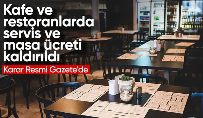Karar göre, kafe ve restoranlarda tüketiciden servis, masa, kuver ve benzeri herhangi bir ek ücret talep edilmeyecek.