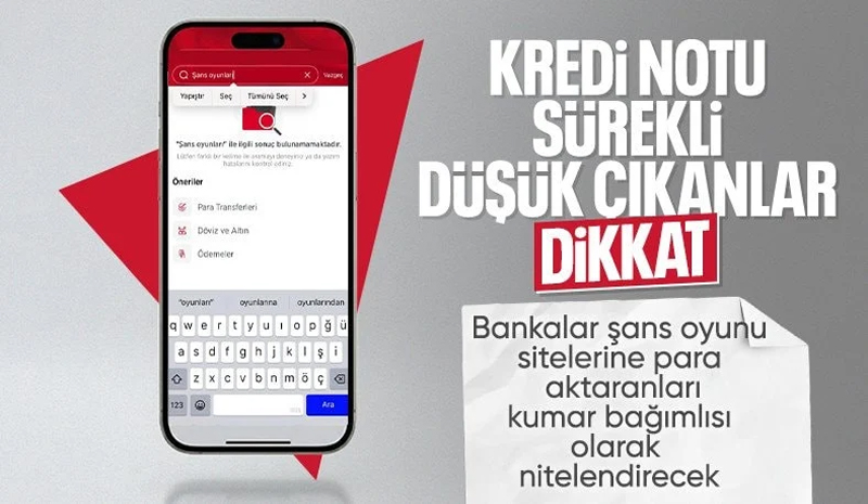 Sabah'tan Barış Şimşek'in haberine göre, bankalardan şans oyunları sitelerine para aktaran kişiler, "kumar bağımlısı" olarak değerlendirilerek bankalara yaptıkları kredi başvurularında kredi notları düşecek.