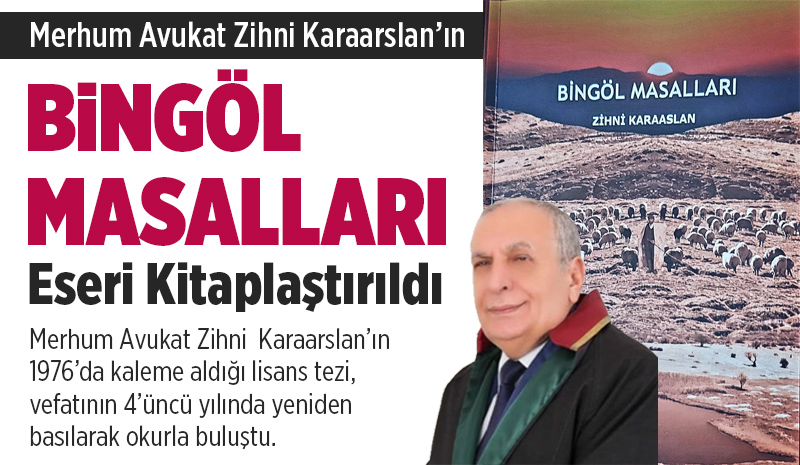 Bingöl'de uzun yıllar öğretmenlik ve avukatlık yapan merhum Avukat Zihni Karaarslan'ın, 1976 yılında lisans tezi olarak hazırladığı “Bingöl Masalları” adlı çalışması, ölümünün 4'üncü yılında kitap olarak yayımlandı.