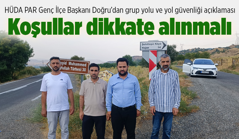 | 'Koşullar dikkate alınmadan yol yapılmamalı'Genç İlçesi Şehittepe–Dereköy–Balgöze–Yiğitbaşı Grup Yolu ile Şehittepe–Ardıçdibi köy yolu ayrımındaki sorunlara dikkat çeken Doğru, denetim eksikliği ve özen yetersizliği nedeniyle ortaya çıkan bu tablonun, kamu kaynaklarının verimli kullanılmadığına işaret ettiğini vurguladı. HÜDA PAR Genç İlçe Başkanı Yusuf Doğru, Şehittepe–Dereköy–Balgöze–Yiğitbaşı Grup Yolu ile Şehittepe–Ardıçdibi köy yolu ayrımına ilişkin açıklama yaptı. Doğru, yaklaşık bir yıl önce tamamlanan grup yolunda kısa sürede kaymalar ve asfalt bozulmaları meydana geldiğini belirterek, bu durumun sürücüler için ciddi güvenlik riski oluşturduğunu ifade etti. “Yaklaşık bir yıl önce tamamlanan grup yolunda, kısa sürede kaymalar ve asfalt bozulmaları meydana gelmiştir. Bu durum, sürücüler için ciddi güvenlik riski oluşturmakta ve vatandaşlarımızın ulaşımını zorlaştırmaktadır,” dedi. ‘Denetim eksikliği ve özen yetersizliği' vurgusu! Yolların kısa sürede bozulmasının, yapılan çalışmalarda yeterli fizibilite, alan ve doğa şartlarının dikkate alınmadığını gösterdiğini öne süren Doğru, denetim eksikliği ve özen yetersizliği nedeniyle ortaya çıkan bu tablonun, kamu kaynaklarının verimli kullanılmadığına işaret ettiğini vurguladı. Şehittepe–Ardıçdibi yol ayrımında geçmiş yıllarda yaşanan kazaların, bölgedeki yol standardının yeniden gözden geçirilmesi gerektiğini açıkça ortaya koyduğunu ifade eden Doğru; “Şehittepe–Ardıçdibi yol ayrımında geçmiş yıllarda yaşanan kazalar, bölgedeki yol standardının yeniden ele alınması gerektiğini göstermektedir” dedi. Köy sakinlerinden gelen bildirimler doğrultusunda konunun yakından takip edildiğini belirten Doğru, HÜDA PAR olarak vatandaşların güvenliği ve ulaşım konforu için süreci kararlılıkla izlediklerini vurguladı: “Bizler, çözüm odaklı bir anlayışla; yollar güvenli, ulaşım sorunsuz olmalıdır. Gerekli teknik inceleme ve onarım çalışmalarının ivedilikle yapılması gerekmektedir. HÜDA PAR olarak süreci dikkatle izliyor, sonuç alıncaya kadar takipte kalıyoruz.”