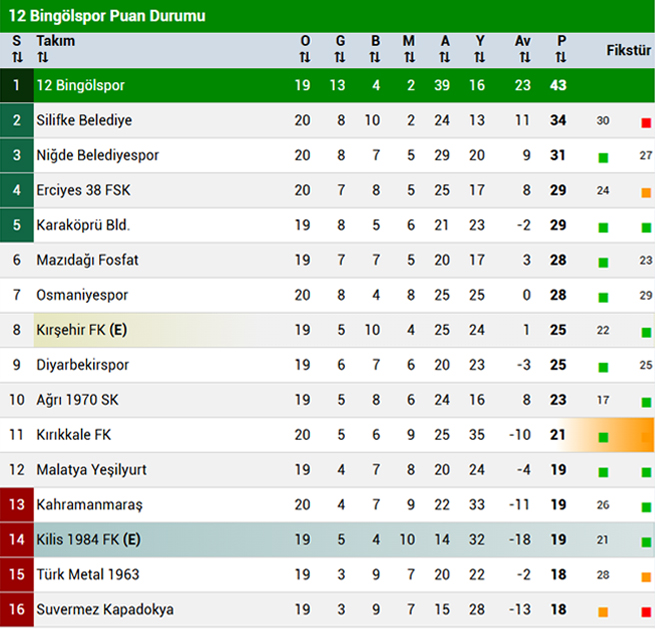 3.Lig 2. Grup'ta liderliğini sürdüren 12 Bingölspor, sezonun 20. haftasında Kırıkkale Başpınar Stadyumu'nda Kırıkkalespor'a konuk oldu. Saat 13.00'te başlayan karşılaşmayı Eskişehir bölgesi hakemlerinden Semih Kurt yönetti.