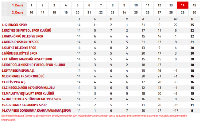 Lider farkı açtı! 12Bingölspor dolu dizgin!Yeşil-beyazlılar Osmaniyespor'u 2-0 mağlup ederek liderliğini perçinledi. En yakın takipçisiyle arasındaki puan farkını 13'e çıkaran 12Bingölspor, şampiyonluk yolunda önemli bir aşamayı daha katetti.![]() TFF 3. Lig 2. Grup'ta mücadele eden 12 Bingölspor, sezonun 14. haftasında sahasında konuk ettiği Osmaniyespor'u 2-0 mağlup ederek liderliğini sürdürdü. Üst sıralardaki rakiplerinin puan kaybettiği haftada kazanan yeşil-beyazlı ekip, puan farkını 13'e yükseltti. Bingöl Şehir Stadyumu'nda saat 13.00'te başlayan karşılaşmayı İstanbul bölgesi hakemlerinden Ertuğrul Kösterelioğlu yönetti. Taraftarının da desteğini arkasına alan 12 Bingölspor, maçın ilk dakikalarından itibaren oyunun kontrolünü elinde tuttu. Yeşil beyazlı ekip, baskılı oyununu 26. dakikada Yusuf Efe Saydam'ın attığı golle skora yansıtarak 1-0 öne geçti. İlk yarının kalan bölümünde farkı artırma fırsatları yakalayan 12 Bingölspor, soyunma odasına 1-0'lık üstünlükle gitti. Skoru Burak Taşdemir Belirlediİkinci yarıya da etkili başlayan yeşil-beyazlılar, oyunu rakip sahaya yıkarak gol arayışlarını sürdürdü. Mücadelenin 90. dakikasında ceza sahasında yaşanan karambolde topu ağlara gönderen Burak Taşdemir, skoru 2-0'a taşıdı. Karşılaşmanın uzatma dakikalarında başka gol olmayınca 12 Bingölspor, sahadan 2-0'lık galibiyetle ayrılarak hanesine 3 puan yazdırdı. Ligde Büyük AvantajBu galibiyetle puanını 35'e çıkaran 12 Bingölspor, grupta 3. sırada yer alan Osmaniyespor karşısında önemli bir zafer elde ederken; Erciyes 38 Spor, Niğdespor ve Karaköprü Belediyespor'un haftayı puan kayıplarıyla kapatmasıyla ligdeki liderlik avantajını daha da güçlendirdi.