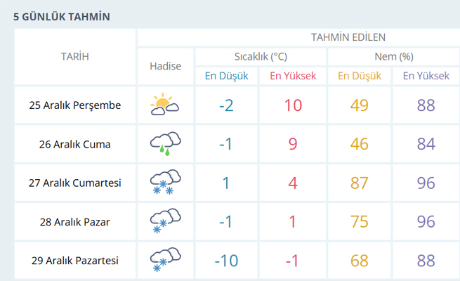 Meteoroloji'den Bingöl'e Yoğun Kar UyarısıSürücüler ve besiciler için kritik günler başlıyor! Bir diğer önemli uyarı ise sürücülere! Kış lastiği olmadan yola çıkılmaması istenirken, olası tipi ve buzlanma nedeniyle yollarda mahsur kalma riskine de dikkat çekildi.![]() Meteoroloji Genel Müdürlüğü, Cumartesi gününden itibaren Bingöl genelinde yoğun kar yağışının etkili olacağını duyurdu. Yapılan değerlendirmelere göre, kar yağışının hafta boyunca devam etmesi beklenirken, özellikle ulaşımda yaşanabilecek aksamalara karşı vatandaşların dikkatli olması istendi. YAĞMURDAN KARA GEÇİŞMeteorolojik verilere göre Cuma günü yağmur etkili olacak, Cumartesi itibariyle ise yağışlar kara dönüşecek. Yoğun kar yağışının özellikle yüksek kesimlerde etkisini artırması, bazı köy yollarında ulaşımı zorlaştırması bekleniyor. SÜRÜCÜLERE HAYATİ UYARIMeteoroloji ve yetkililer, başta şehirler arası yolculuk yapan ticari araçlar ve özel araç sürücüleri olmak üzere tüm sürücüleri uyardı. Kış lastiği bulunmayan araçlarla kesinlikle yola çıkılmaması, kış lastiği olan sürücülerin ise zincir, çeki halatı ve gerekli ekipmanları yanlarında bulundurmaları istendi. Olası tipi ve buzlanma nedeniyle yollarda mahsur kalma riskine dikkat çekildi. BESİCİLER VE YÜKSEK KESİMLER DİKKATYoğun kar yağışının kırsal alanlarda etkili olacağına dikkat çeken yetkililer, besicilerin hayvanlarını korumaya yönelik tedbirleri artırmaları, yüksek kesimlerde yaşayan vatandaşların ise ulaşımda yaşanabilecek aksamalara karşı hazırlıklı olmaları çağrısında bulundu. Yetkililer, hava koşullarına bağlı gelişmelerin yakından takip edilmesini ve zorunlu olmadıkça riskli saatlerde yola çıkılmamasını önerdi.