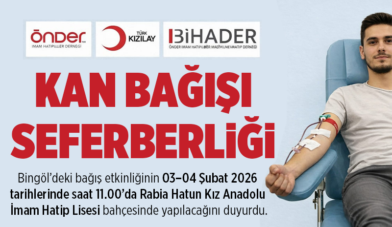 ÖNDER'den Türkiye Genelinde Kan Bağışı SeferberliğiÖNDER İmam Hatipliler Derneği, Türk Kızılay iş birliğiyle 'İyilik Kanımızda Var' sloganıyla Türkiye genelinde kan bağışı kampanyası başlatırken, Bingöl'deki bağış etkinliğinin 03–04 Şubat 2026 tarihlerinde Rabia Hatun Kız Anadolu İmam Hatip Lisesi bahçesinde yapılacağını duyurdu.![]() ÖNDER İmam Hatipliler Derneği tarafından yapılan basın açıklamasında, insan hayatını önceleyen bir anlayışla Türk Kızılay ile yürütülen iş birliği kapsamında Türkiye genelinde kapsamlı bir kan bağışı seferberliği başlatıldığı bildirildi. 81 İlde Eş Zamanlı UygulamaAçıklamada, ÖNDER'in 81 ilde faaliyet gösteren 680 derneği ve yaygın gönüllü ağıyla kampanyanın ülke genelinde eş zamanlı olarak yürütüleceği belirtildi. Çalışmanın yalnızca geçici bir kampanya değil, uzun vadede düzenli kan bağışı kültürünün oluşmasına katkı sunacak toplumsal bir çağrı olduğu vurgulandı. “İyilik Kanımızda Var” Sloganıyla SahadaÖNDER ailesinin gönüllülük gücünü sahaya yansıtacağı ifade edilen açıklamada, il ve ilçe teşkilatlarının aktif katılımıyla kan bağışı noktalarının daha görünür ve ulaşılabilir hale getirilmesinin hedeflendiği kaydedildi. Kan Bağışı Bir Sorumluluk Olarak GörülüyorAçıklamada, kan bağışının yalnızca gönüllülük faaliyeti değil, insanî ve ahlâkî bir sorumluluk olarak görüldüğü belirtilerek, imam hatip camiasının ihtiyaç sahiplerinin ve hayat mücadelesi veren herkesin yanında durmayı bir emanet olarak kabul ettiği ifade edildi. Bingöl'de Bağış Noktası AçıklandıKampanya kapsamında Bingöl'de düzenlenecek kan bağışı etkinliğinin 03 Şubat günü 11:00-18:00 saatleri arasında, 04 Şubat 2026 günü ise 10:00-17:30 arasında Rabia Hatun Kız Anadolu İmam Hatip Lisesi bahçesinde gerçekleştirileceği bildirildi. Gönüllülerin, belirtilen tarihlerde Kızılay ekiplerine kan bağışında bulunabileceği aktarıldı. Düzenli Bağış ve Farkındalık HedefleniyorAçıklamada, gönüllülerin Türkiye genelindeki Kızılay kan bağışı noktalarına yönlendirilerek düzenli, planlı ve sürdürülebilir bir bağış sürecinin oluşturulmasının amaçlandığı belirtildi. Kan bağışının hayati önemine ilişkin toplumsal farkındalık oluşturmanın kampanyanın temel hedefleri arasında yer aldığı ifade edildi. Her Bağışa Üç FidanTürk Kızılay tarafından her bağışçı adına üç fidan dikileceği belirtilen açıklamada, bu uygulamayla çevre duyarlılığına da katkı sağlanacağı kaydedildi. Kampanyanın, sağlık sistemine destek sunmanın yanı sıra ülke genelinde kalıcı bir dayanışma ve iyilik hareketine dönüşmesinin amaçlandığı vurgulandı. Vatandaşlara DavetÖNDER İmam Hatipliler Derneği, başta imam hatip camiası olmak üzere tüm vatandaşları kan bağışına destek olmaya davet ederek, “Bir ünite kan ile üç cana umut olma” çağrısında bulundu.