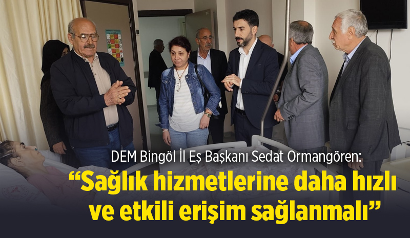 DEM Parti Bingöl İl Eş Başkanı Sedat Ormangören, hastanede tedavi gören tüm hastalara acil şifalar dileyerek, “Halkımızın sağlık hizmetlerine daha hızlı ve etkili erişimi bizim için öncelikli bir konudur. Bu ziyaretimiz, hem vatandaşlarımızın ihtiyaçlarını yerinde görmek hem de sağlık kurumlarımızın desteklenmesi açısından büyük önem taşıyor” ifadelerini kullandı.