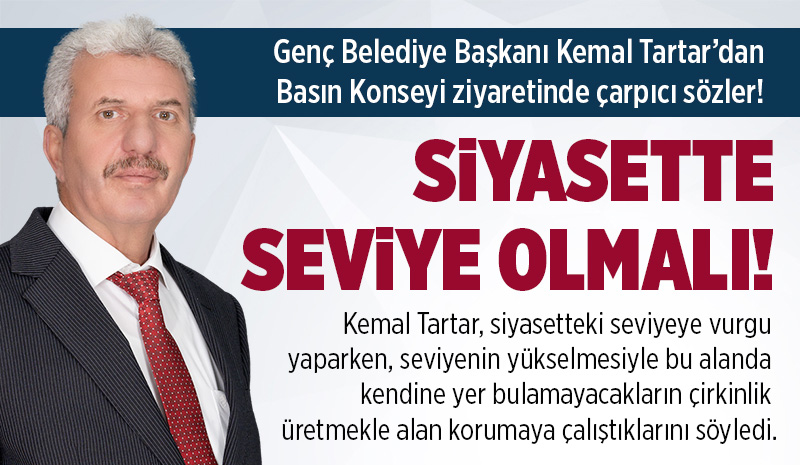 Bingöl'ün Genç İlçesi Yeniden Refah Partili Belediye Başkanı Kemal Tartar, hafta sonu ilk kongresini yapan Bingöl Basın Konseyi'ne ziyarette bulundu. Konsey Başkanı Hakim Bayraktar ve Yönetim Kurulu Üyesi Ahmet Sayılır tarafından karşılanan Başkan Tartar, ‘hayırlı olsun' dileklerini ilettiği ziyarette, belediyecilik alanındaki hizmetlerini anlatırken, siyasete dair de çarpıcı sözler sarf etti.