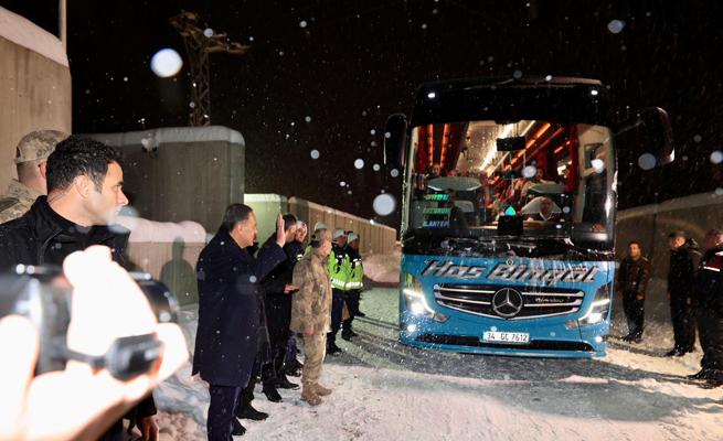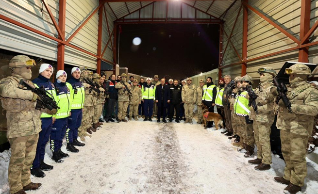 Bingöl'de yılbaşı gecesi etkisini artıran yoğun kar yağışı, buzlanma ve dondurucu soğuk havaya rağmen, vatandaşların yeni yıla huzur ve güven içerisinde girebilmesi için Emniyet Müdürlüğü ve Jandarma Komutanlığı ekipleri çalışmalarını sürdürüyor. Vali Dr. Ahmet Hamdi Usta beraberindeki İl Jandarma Komutanı Tuğgeneral Sabri Küyük ve İl Emniyet Müdürü Beyti Kalaycı ile birlikte Ekinyolu Jandarma Uygulama Noktasında görevli personel ile bir araya geldi. Çalışmalar ve son durum hakkında bilgi alan Vali Usta, aynı zamanda hem güvenlik güçlerinin hem de seyahat eden vatanların yeni yılını kutladı.